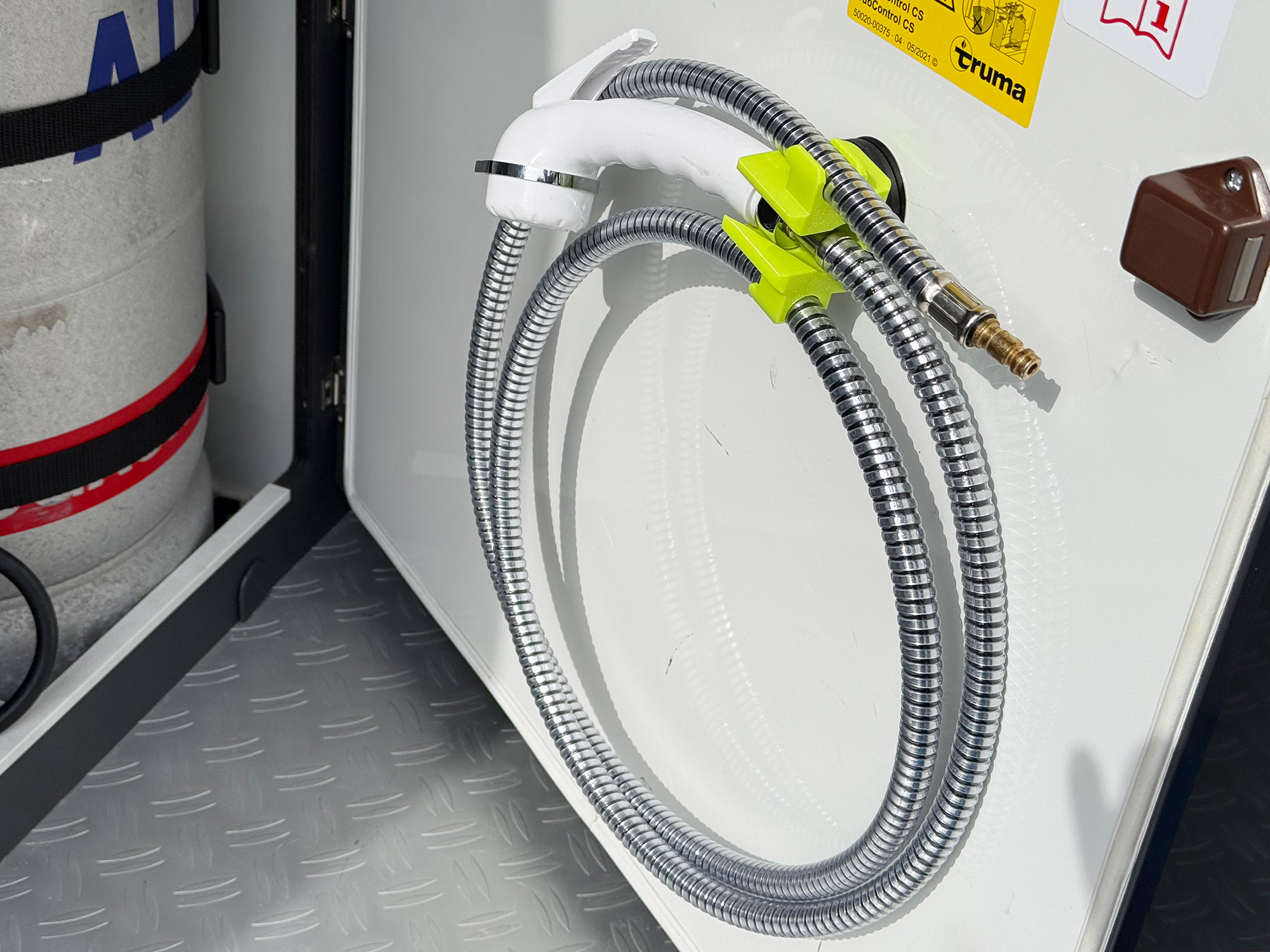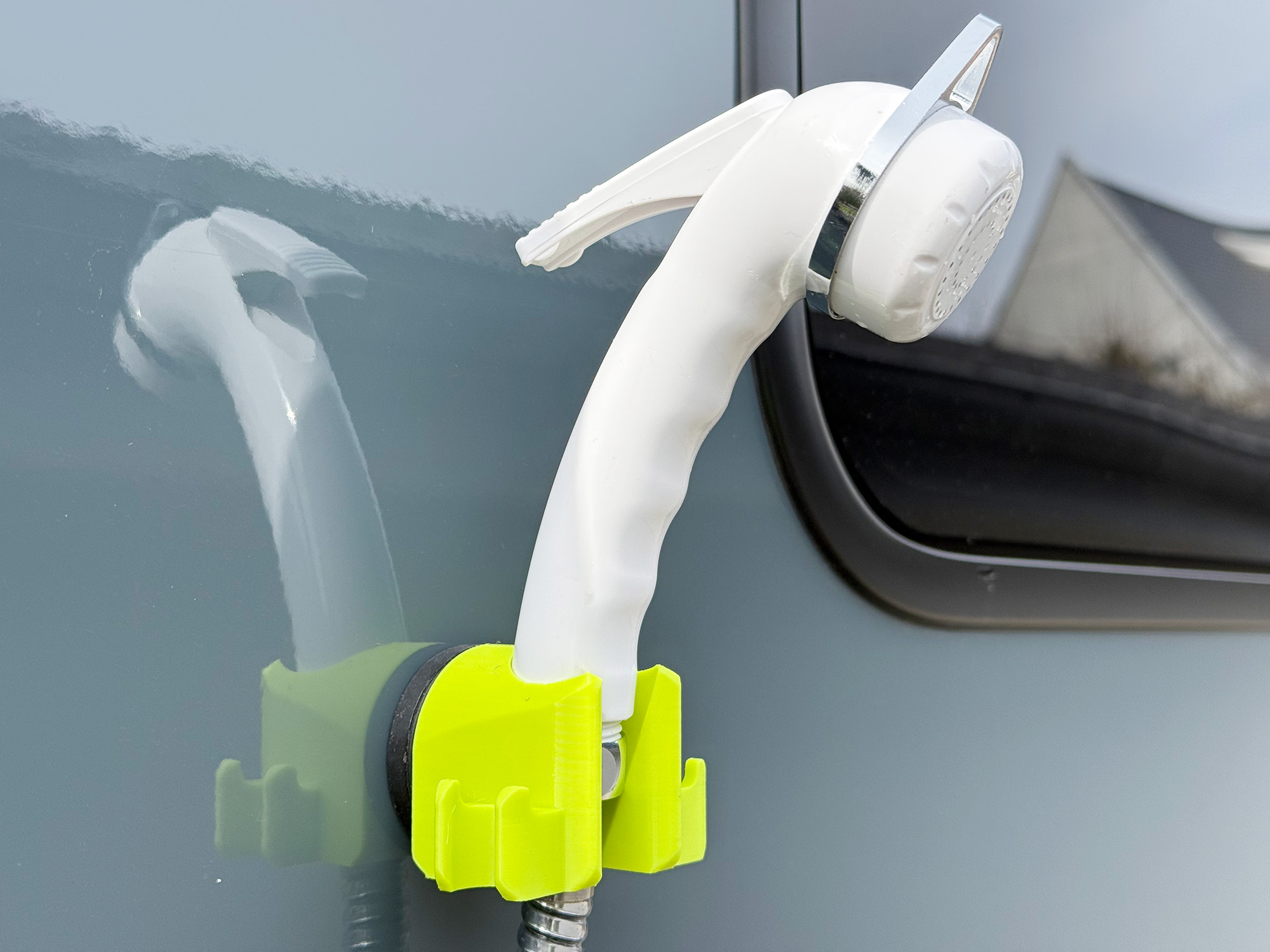 Der Camperfixx Magnet-Halter für Außenduschen bringt Ordnung ins System.