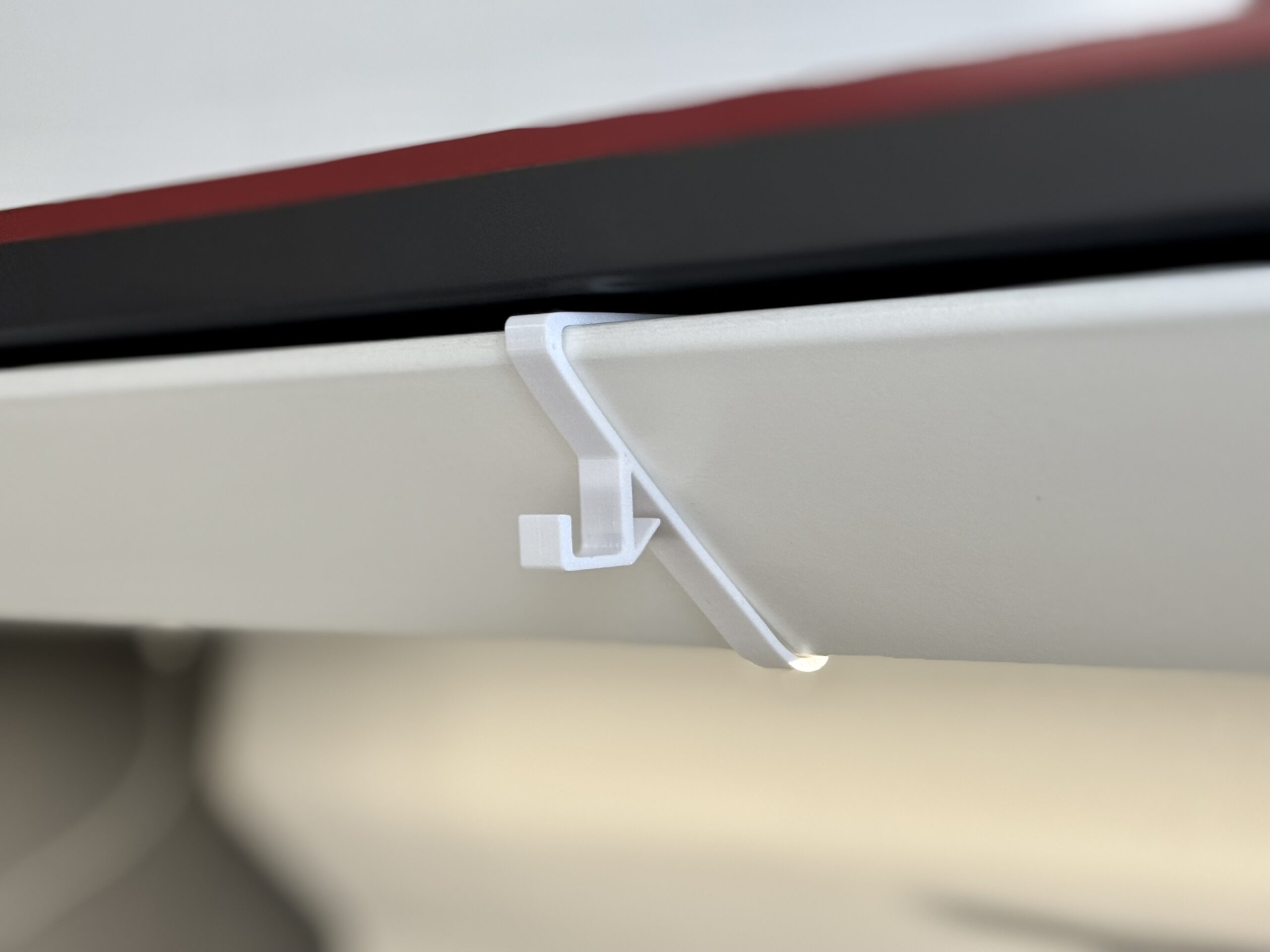 Dieser Profilhaken mit Lichterkettenhalter wird direkt in das originale Schrankprofil der Adria Kastenwagen bis Modelljahr 2024 eingehängt.